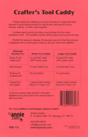 This versatile Crafter's Tool Caddy comes in two sizes, providing dozens of multi-sized pockets for organizing and transporting all your crafting essentials. Ideal for quilting, sewing, and other crafts, it features a sturdy plastic paint bucket base for stability. The caddy includes a bucket handle for easy carrying, making it perfect for classes or on-the-go projects. With easy-to-follow step-by-step instructions, setting up your caddy is a breeze. The design ensures all your supplies are within reach, enhancing your crafting experience.
