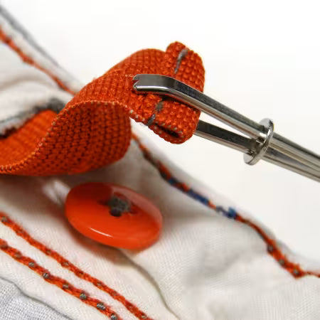 Thread elastics & ribbons and replace drawstrings effortlessly using the Dritz Ezy-Pull Bodkin. The pack contains one bodkin which allows you to perform twist-free threading of elastic and other thin fibers. This threader and tweezer tool features special ‘teeth’ that grip well and are held together by a sliding ring. Simply clamp the bodkin over the elastic, slide the ring to lock into place and thread through the casing. Insert elastic into waistband and sleeve casings. Draw cording through tubing and casings. Weave ribbon and trims.