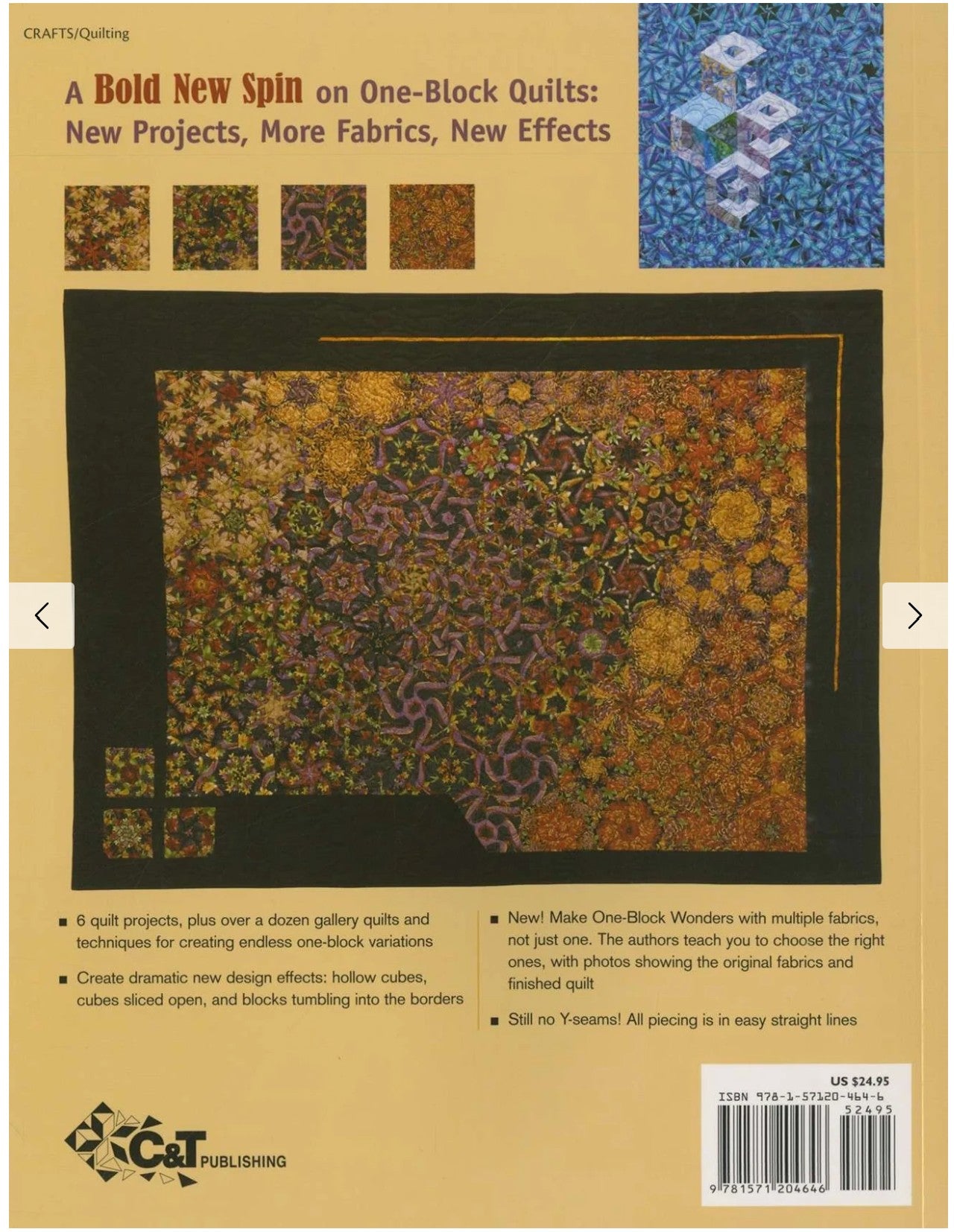 Maxine Rosenthal, Joy Pelzmann A Bold New Spin on One-Block Quilts: New Projects, More Fabrics, New Effects * 6 quilt projects, plus over a dozen gallery quilts and techniques for creating endless one-block variations * Create dramatic new design effects quilters have been asking for: hollow cubes, cubes sliced open, and blocks tumbling into the borders * New! Make one-block wonders with multiple fabrics, not just one. The authors teach you to choose the right fabrics, with photos showing the original fabrics and the finished quilt * Still no Y-seams! All piecing is easy straight lines You'll love everything that's new in this exciting sequel from the best-selling author of One-Block Wonders: stunning new quilts, new visual effects, and ways to add even more color to your quilts with multiple fabrics. You'll still love the whirling, dramatic designs, the simple straight-line piecing, and the dramatic large-scale prints that make One-Block Wonders a fabric-lover's favorite.